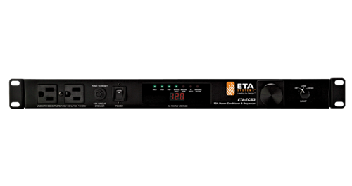 The ETA-ECS3 has been designed to meet most installation requirements for AC power distribution and equipment power protection. The 15A compact 1 RU unit features three sequential timing sections that can be activated via the unit, or remotely. Front panel activation is via a momentary switch, while rear activation is via a momentary contact closure, or by 5-24VDC trigger feed. AC Mains Voltage can be monitored via the front panel from the precision Digital Volt Meter. To light your rack, the ETA-ECS3 has incorporated a front panel pull-out dimmable LED tube light. The rear of the rack can be illuminated by the optional 16" gooseneck LED lamp connected via an XLR style socket. LED lamps are far superior in longevity along with heat reduction when compared to traditional incandescent lamps and the XLR base mounts are also superior to the commonly used BNC type base. If a 15A AC Mains power source is not enough to meet the amperage demand of your system, the ETA-ECS3 provides a sequenced 24VDC output that can be used to trigger other devices such as the ETA Systems ETA-20SH 20A stand alone AC power module.